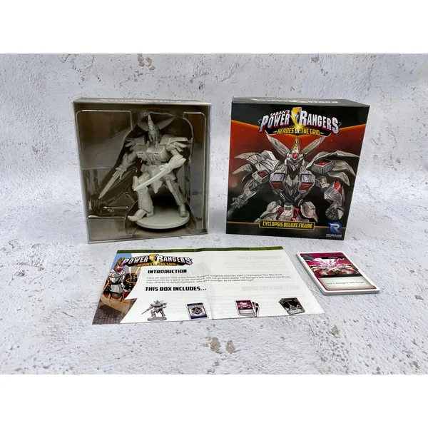 - Contenu complet : 1 figurine Cyclopsis Deluxe, 1 carte de déploiement, 6 cartes ennemies, 6 cartes composant et 1 feuille de règles.