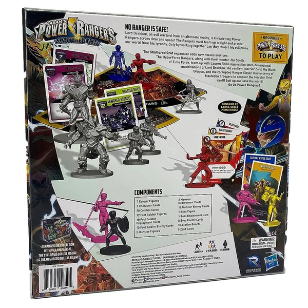 Partez dans une aventure épique avec les Power Rangers dans l’extension « Shattered Grid » de Renegade Game Studios. Lord Drakkon, seigneur de guerre malveillant d’une réalité alternative, est sur le point de conquérir le Morphin Grid à travers le temps et l’espace. Les Rangers doivent s’unir, combattre et contrecarrer ses machinations interdimensionnelles pour sauver le monde. Rejoignez de nouveaux héros, dont les HyperForce Rangers et Jen Scotts, mentor de Time Force, qui s’allient à Lauren Shiba pour affronter Lord Drakkon. Préparez-vous au combat et protégez le Morphin Grid. Go Go Power Rangers !