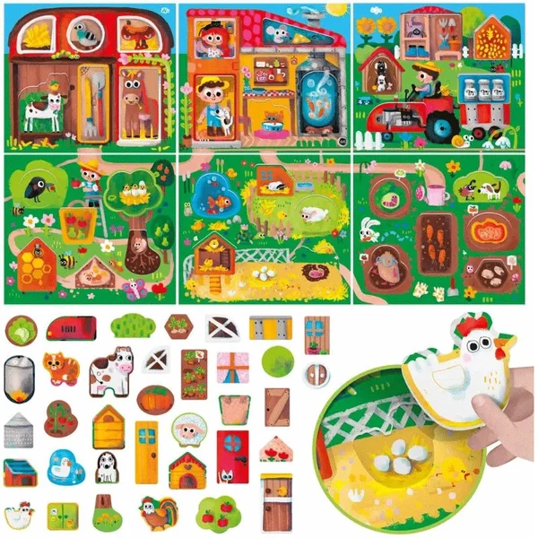 Qui dort à l’étable ? Qu’est-ce qui pousse au potager et où conserve-t-on le blé ? Amuse-toi à faire une foule de découvertes à la ferme, en compagnie des animaux et des personnes qui y vivent !