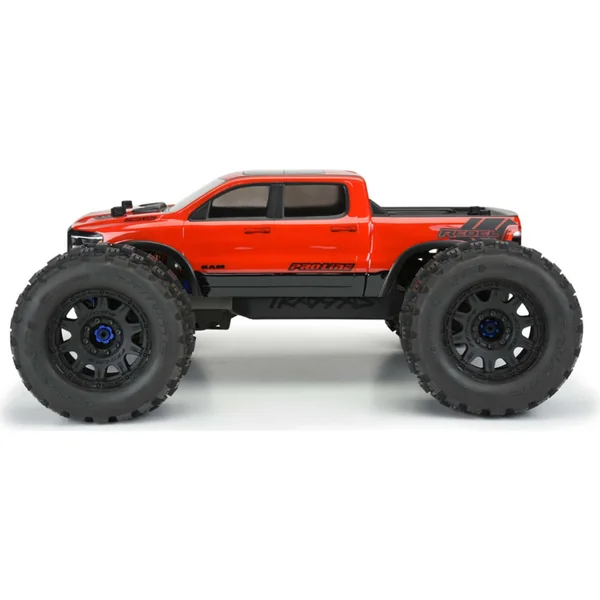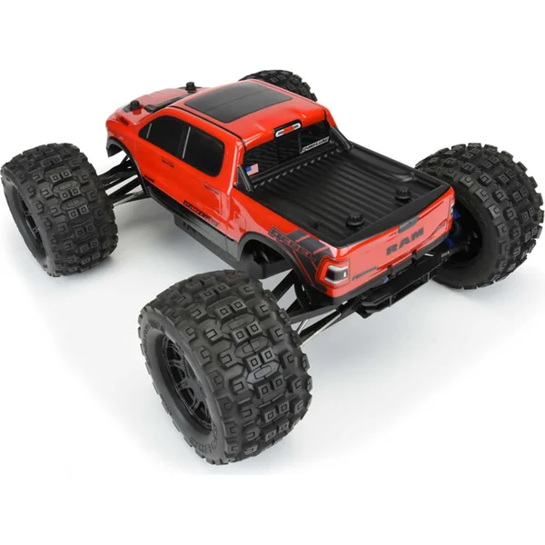 Carrosserie Pro-Line découpée transparente 2020 Ram Rebel 1500, pour modèles RC E-REVO 2.0 à l’échelle 1:8, empattement 321mm, longueur 492mm, largeur 181mm. Fabriqué en lexan résistant.