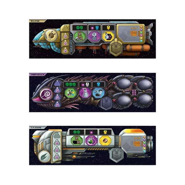 Nouvelles factions : les Moweyd, les Briconautes, les Darkaniens et les Titans vous proposent de nouvelles options de jeu. Aucun d’entre eux ne dispose d’une planète natale et ils commencent avec un seul bâtiment. Ces factions et les capacités uniques qu’elles apportent vous permettent de découvrir des stratégies inédites. Nouvelles actions : envoyez vos nouvelles navettes vers les vaisseaux de la Flotte Perdue pour les explorer. Une fois à bord, vous profiterez de nouvelles actions, de nouvelles technologies et de nouveaux pions Alliance. Sans parler des mystérieux artefacts que l’un des vaisseaux abrite…