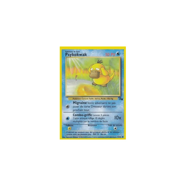 Découvrez Psykokwak (fo053), une carte Pokémon de l’extension Fossile, provenant du bloc Wizards. Idéale pour compléter votre collection, cette carte Commune plaira autant aux collectionneurs qu’aux joueurs.