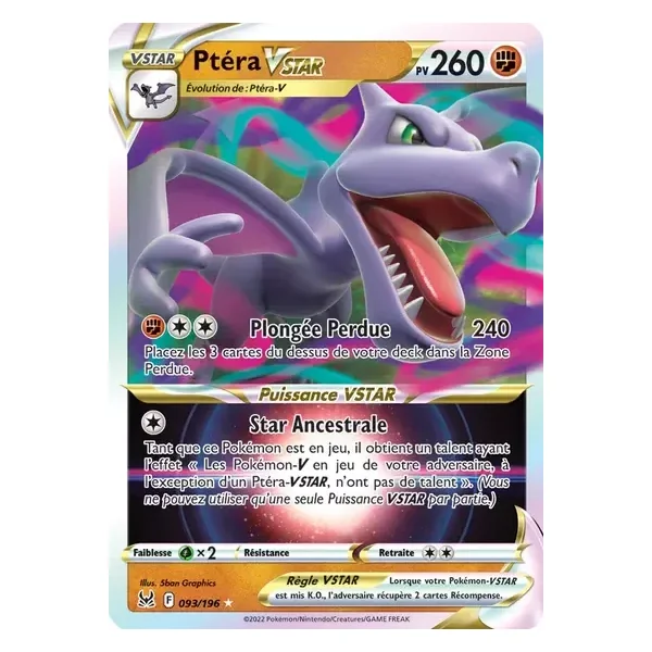 Découvrez Ptéra (lor093), une carte Pokémon de l’extension Origine Perdue, provenant du bloc Épée & Bouclier. Idéale pour compléter votre collection, cette carte Ultra Rare plaira autant aux collectionneurs qu’aux joueurs.