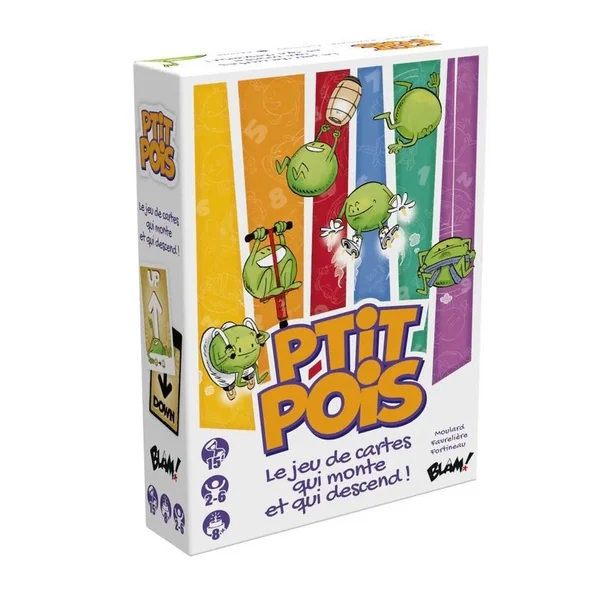Dans Ptit Pois, votre mission est de vous débarrasser de vos cartes et de mettre fin à la manche lorsque vous estimez avoir le plus petit score… Mais attention, tout n’est pas aussi simple qu’il y paraît ! En effet, vous ne connaissez pas toutes vos cartes et devrez faire preuve de stratégie pour décider quand les révéler. Chaque décision, chaque mouvement peut avoir des conséquences majeures : prendre un risque inconsidéré ou retarder un choix pourrait vous coûter cher. Entre bluff, anticipation et gestion des informations limitées, ce jeu vous promet des moments de tension et de suspense, où chaque carte peut être décisive.