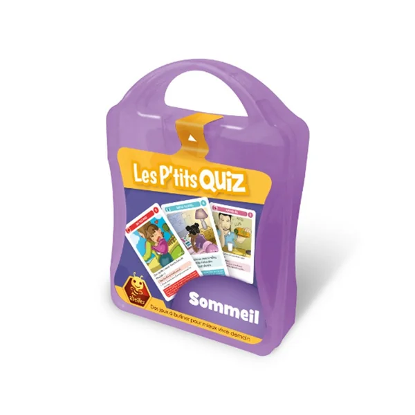 Les P’tits Quiz Sommeil est une adaptation du jeu de 7 familles « Sommeil en famille ». Dans ce jeu vous trouverez 2 modes de jeu supplémentaires en plus du mode de jeu 7 familles. Découvrez toutes les astuces pour mieux dormir, comprendre l’importance du sommeil, et apprenez de nombreuses informations sur le sommeil en général !