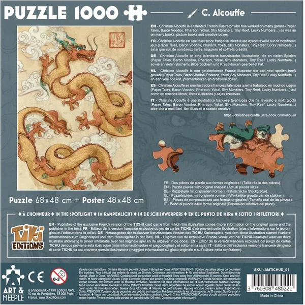 Puzzle 1000 pièces de qualité (incluant un poster) à l’effigie du jeu Tichu de l’éditeur Tiki Éditions.
