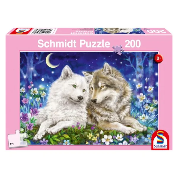 Un puzzle mettant en scène un couple de loups se reposant dans une clairière fleurie.