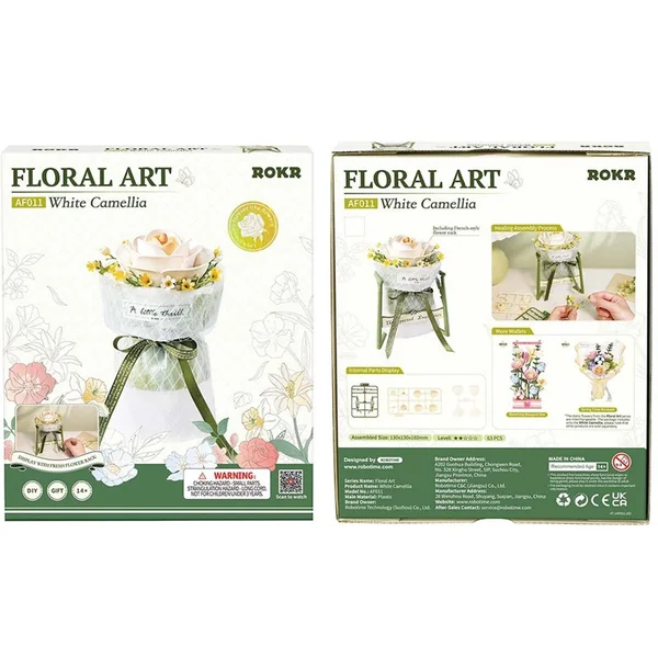 Le camélia blanc est un élégant puzzle 3D de la collection d’art floral de ROKR. Cette miniature complexe imite l’élégance intemporelle et la pureté de la fleur, ce qui en fait la décoration de bureau ou le cadeau idéal.
