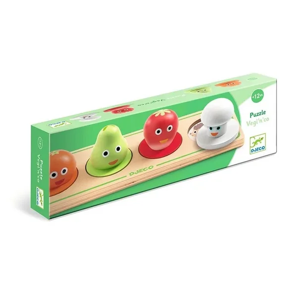 Vegi’n’Co est un puzzle en bois facile à manipuler sur le thème végétal : les pièces du puzzle en volume facilitent la préhension par les petites mains. L’enfant place les pièces en reconnaissant sur le plateau les couleurs.