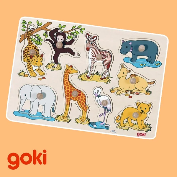 Puzzle en bois bébés animaux d’Afrique 9 pièces – Goki