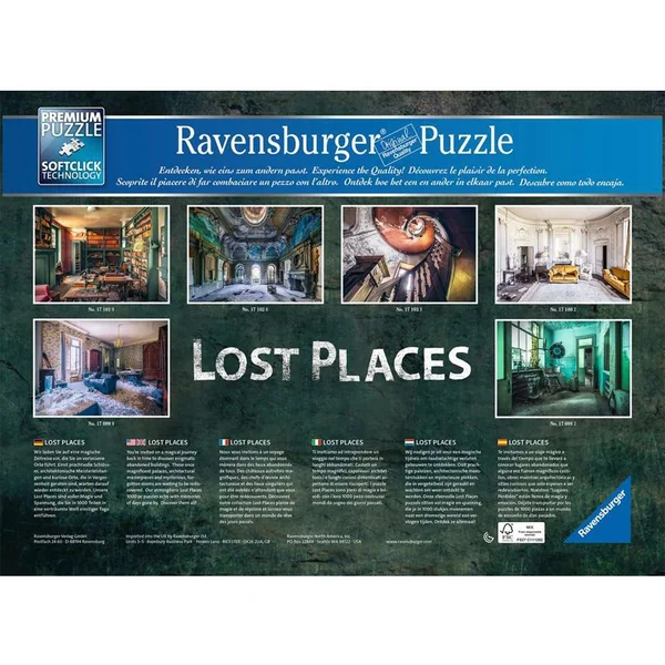exploration de mondes oubliés, les pièces du puzzle nous emmènent découvrir des endroits magiques. Chaque référence de la gamme Lost Places met en lumière des détails méconnus de ces lieux intrigants, de la salle de bal abandonnée, au mystérieux cabinet médical délabré.