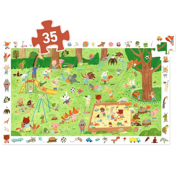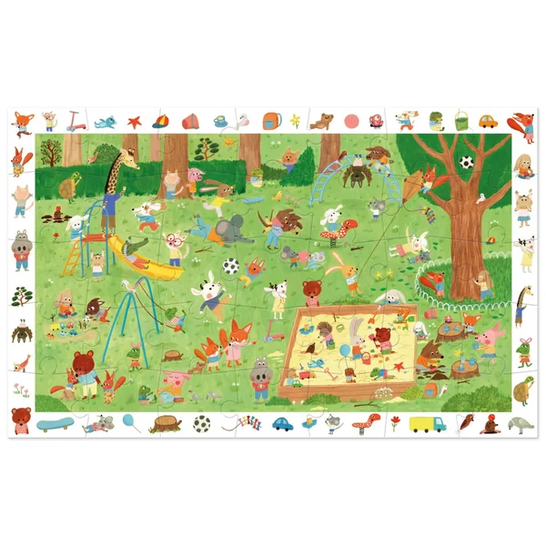 Tout autour d’une grande image, des dizaines de sujets ou d’objets à découvrir ! Commence par assembler les pièces du puzzle, puis amuse-toi à retrouver les éléments de la frise dans l’image centrale.
