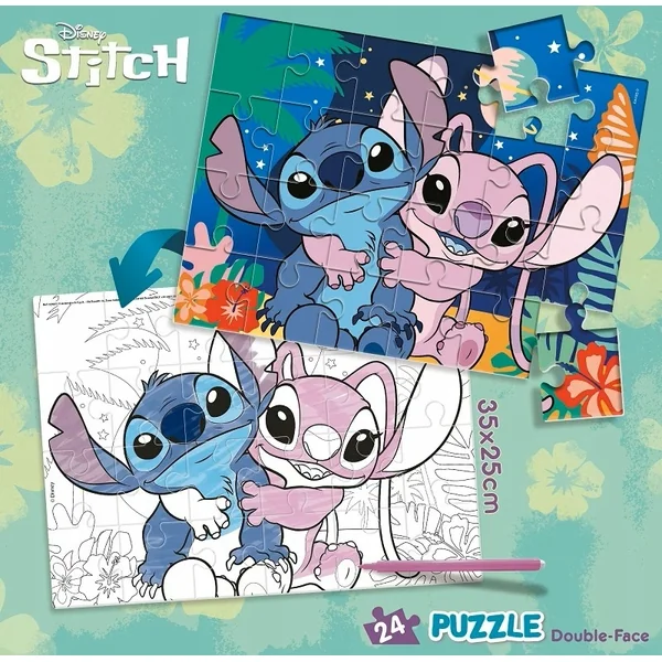 Une excellente amusement avec Stitch ! Non seulement de magnifiques puzzles pleins de couleurs, mais aussi de la peinture. Le recto est un puzzle classique et le verso est constitué de contours à colorier. Donc, du plaisir en double. Avec les puzzles, les enfants entraînent leur mémoire, leur attention et leur motricité fine. Le puzzle contient 24 pièces.