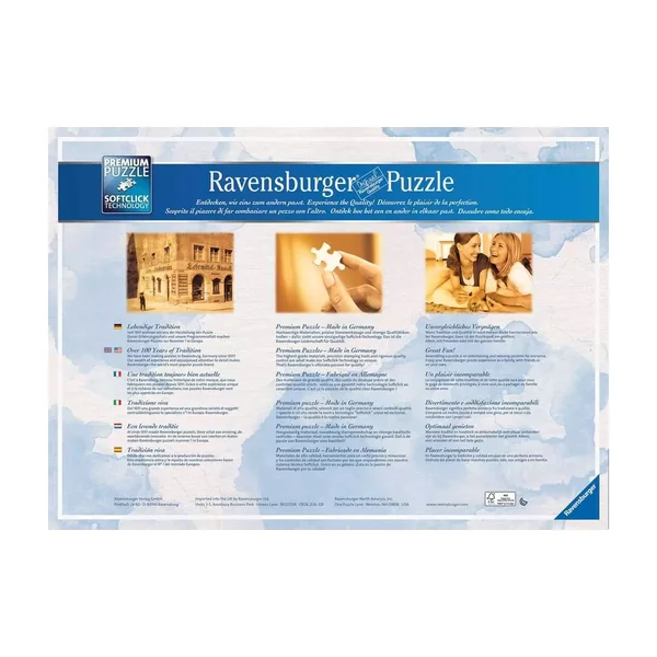 Tous les puzzles de Ravensburger sont imprimés sur un papier au finit mat et anti-reflets (pour le confort de vos yeux) et fabriqués en Europe à partir d’un carton épais, recyclé et certifié FSC.