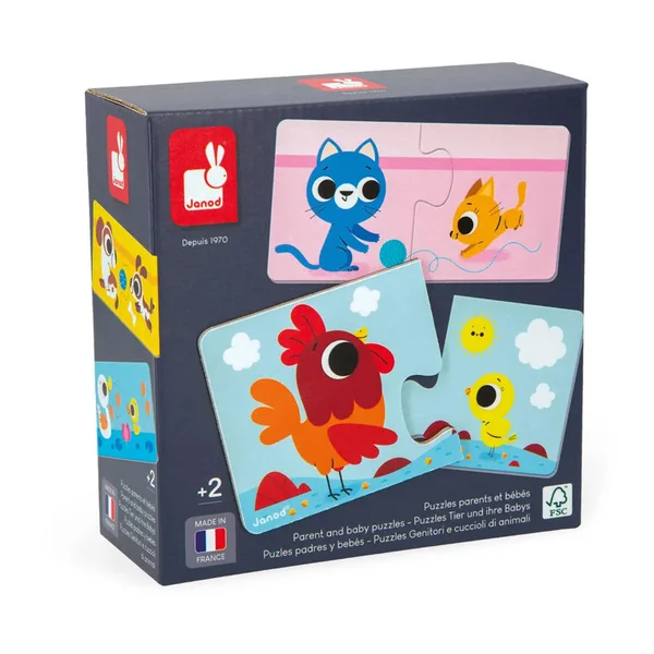 Ces 12 puzzles de 2 pièces sur le thème des animaux de la ferme, permettent à votre enfant de débuter son apprentissage de l’association parents/bébés. Votre enfant pourra enrichir son vocabulaire tout en favorisant sa capacité de réflexion.