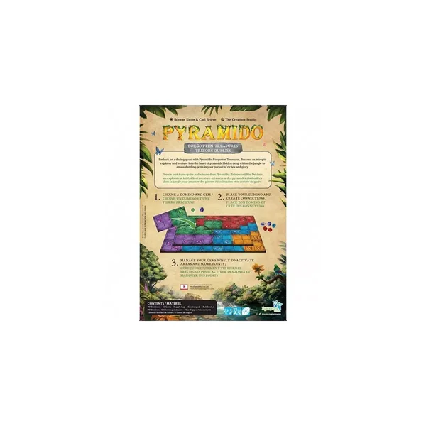 Pyramido : Trésors Oubliés est un jeu de société de placement de tuiles jouable de 1 à 4 joueurs, dès 8 ans pour des parties de 45 minutes, édité par Synapses Games.