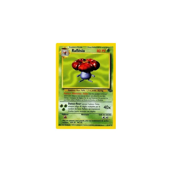 Découvrez Raflésia (ju031), une carte Pokémon de l’extension Jungle, provenant du bloc Wizards. Idéale pour compléter votre collection, cette carte Rare plaira autant aux collectionneurs qu’aux joueurs.