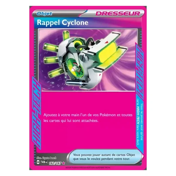 Découvrez Rappel Cyclone (twm162), une carte Pokémon de l’extension Mascarade Crépusculaire, provenant du bloc Écarlate & Violet. Idéale pour compléter votre collection, cette carte High-Tech plaira autant aux collectionneurs qu’aux joueurs.