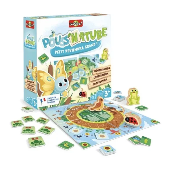 Les enfants observent et mémorisent les tuiles représentant les étapes du cycle de vie du papillon ou de la fleur, puis les retournent face cachée. Arriveront-ils à les retrouver dans le bon ordre et faire de la chenille un joli papillon ou de la graine un grand tournesol ? Mais gare aux prédateurs qui rôdent et qui progressent si les joueurs retournent les mauvaises tuiles ! Les joueurs l’emportent si le cycle de vie est entièrement reconstitué avant que les prédateurs ne puissent finir leur tour.
