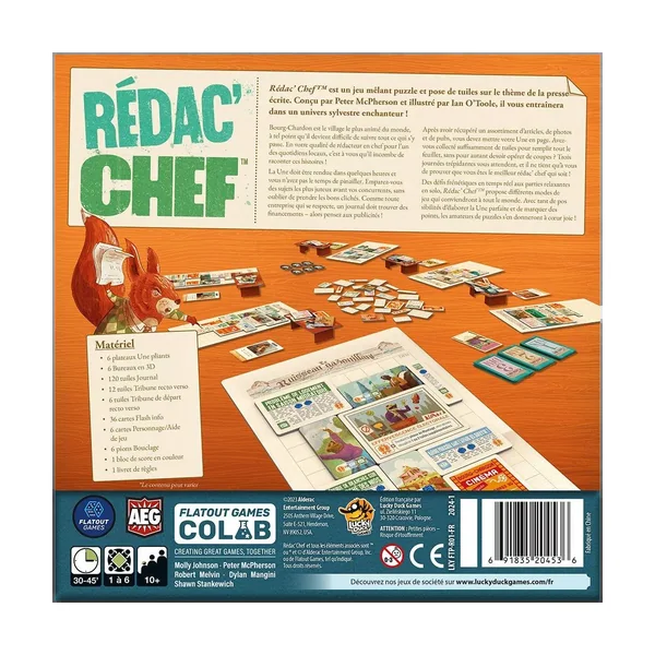 Rédac’Chef est un jeu de placement de tuiles et de puzzle, de 1 à 6 joueurs, dès 10 ans, pour des parties de 15 minutes environ, édité par Lucky Duck Games.