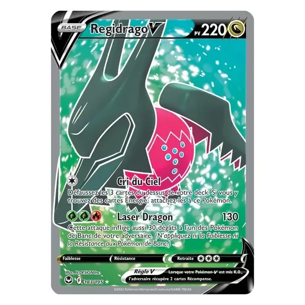 Découvrez Regidrago (sit183), une carte Pokémon de l’extension Tempête Argentée, provenant du bloc Épée & Bouclier. Idéale pour compléter votre collection, cette carte Ultra Rare plaira autant aux collectionneurs qu’aux joueurs.