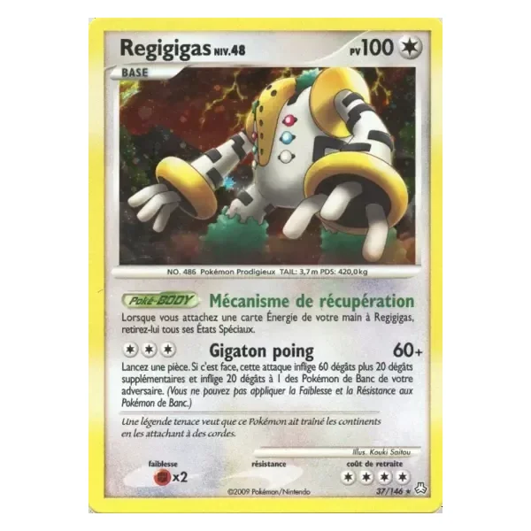 Découvrez Regigigas (la037), une carte Pokémon de l’extension Eveil des Légendes, provenant du bloc Diamant & Perle. Idéale pour compléter votre collection, cette carte Rare plaira autant aux collectionneurs qu’aux joueurs.
