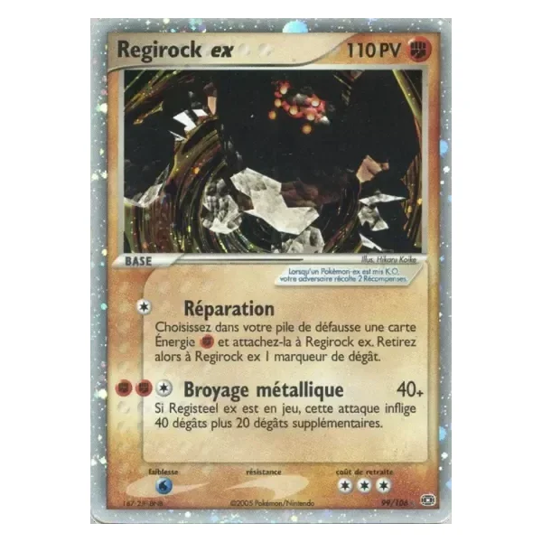 Découvrez Regirock (em099), une carte Pokémon de l’extension Émeraude, provenant du bloc Ex. Idéale pour compléter votre collection, cette carte Ultra Rare plaira autant aux collectionneurs qu’aux joueurs.