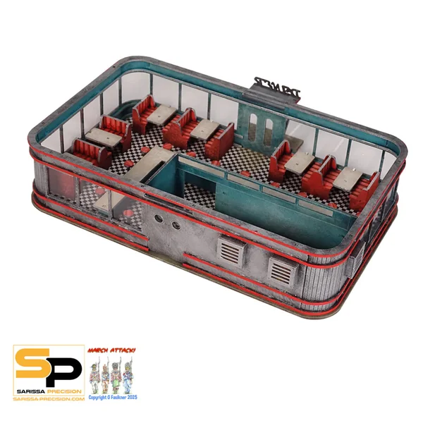 Véritable classique de l’Amérique des années 1950, Joe’s Diner est un point central idéal pour vos parties de jeux de rôle sur table. Ses détails gravés reproduisent à la perfection l’apparence des restaurants routiers qui ont marqué une époque. Il est idéal pour les combats de rue, les embuscades ou les missions narratives dans des petites villes. Parfait pour les jeux de rôle sur table post-apocalyptiques, modernes ou sur le thème de la guerre froide.