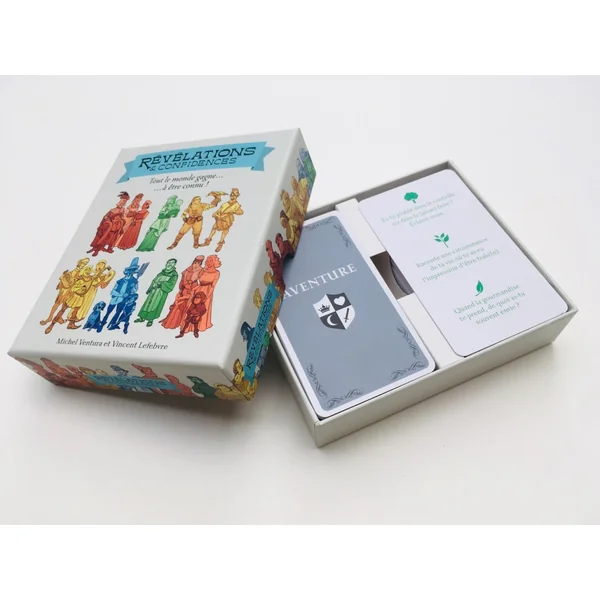 Créé par Michel Ventura, coach, et Vincent Lefebvre, illustrateur, Révélations & Confidences est un jeu où « tout le monde gagne… à être connu ! »