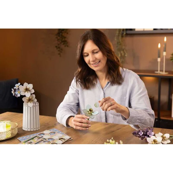Des fleurs fraîches vous font immédiatement sourire – leur beauté disparaît malheureusement souvent trop rapidement. Avec le kit « Blossom Festival », vous pouvez changer cela. Vous créerez une œuvre d’art florale qui ne fane jamais et apporte une joie durable. Ce kit de construction en bois de haute qualité combine la tranquillité méditative de la création avec une décoration intérieure stylée. Le résultat est un bouquet frais, si délicatement travaillé que vous devez regarder deux fois pour réaliser : c’est du bois, pas du vert frais. Parfait pour quiconque souhaite illuminer son intérieur ou cherche un cadeau de valeur durable.