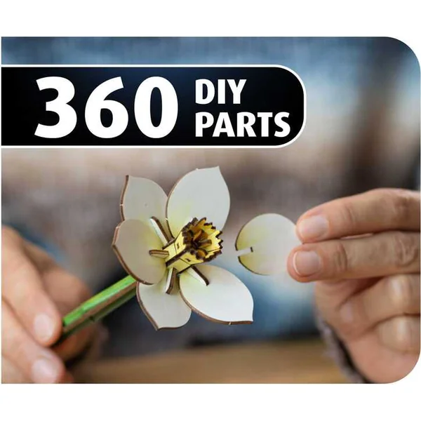 Fleur en bois à assembler. Taille : 32 cm. L’emballage contient 360 pièces.