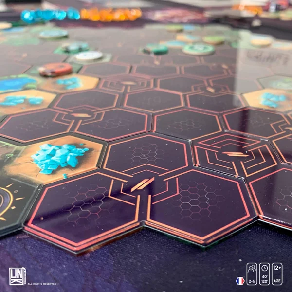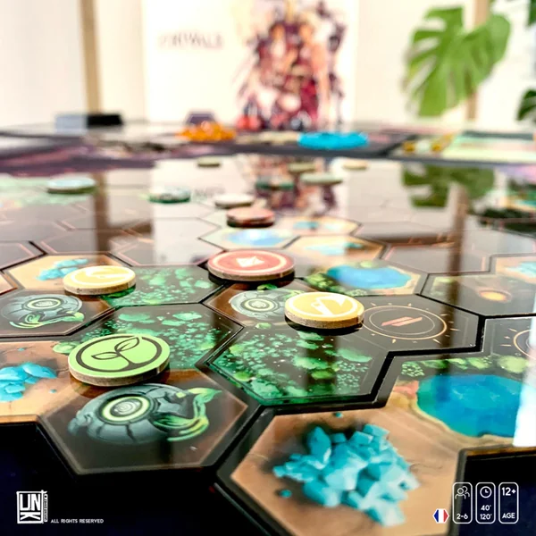 - La WildTech (carte) est composée de 43 tuiles. Vous pouvez explorer, collecter des ressources et combattre vos adversaires.