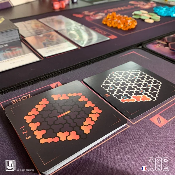 - L’évolution de la carte : A la fin de chaque tour (2 tours par tour), des parties de la carte seront détruites, les joueurs devront piocher des cartes pour découvrir les zones touchées. Attention à ne pas tomber…