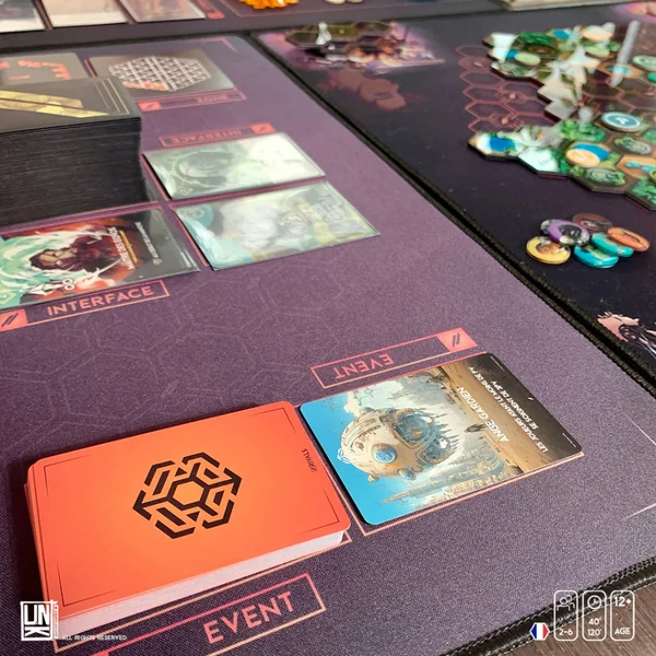 - Interface (tuile noire) : Si vous récoltez sur cette tuile, vous pourrez récupérer de nouvelles cartes pour votre deck et l’optimiser.