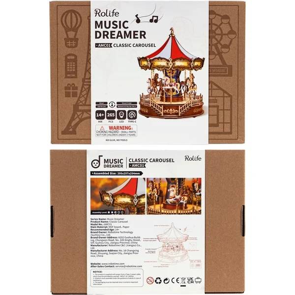 RoboTime Puzzle en bois 3D boîte à musique Carrousel classique
