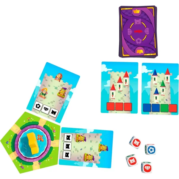 Les joueurs doivent être les plus rapides à bâtir de nombreuses tourelles avec beaucoup d’habitants. Avec de la chance aux dés et une bonne tactique, le premier à achever son château devient le roi et remporte la partie.