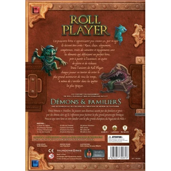 Cette boite de rangement est assez grande pour contenir Roll Player et ses deux extensions.La boite contient la deuxième extension Démons & Familiers.