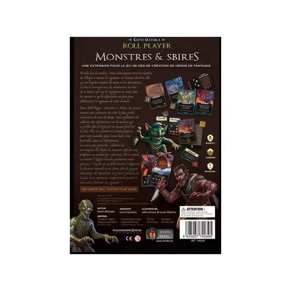 Appel aux armes ! Une abomination terrorise les villages du royaume, laissant derrière elle un champ de mort et de destruction. Le seigneur a demandé à tous les aventuriers valides de retourner dans la capitale et d’organiser un plan pour débarrasser le royaume de cette menace.Dans Roll Player : Monstres & Sbires, non seulement les joueurs s’affrontent pour créer les plus grands personnages fantastiques, mais ils doivent aussi recueillir des informations sur la menace monstrueuse qui se profile à l’horizon, et se préparer à une ultime épreuve de force contre la bête.