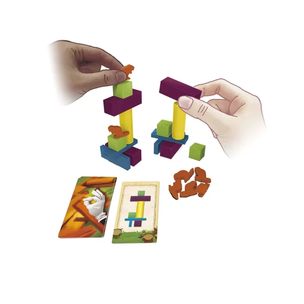 Rondins des bois : Construisez, à l’aide de tous vos rondins, la tour demandée sur la carte mission le plus rapidement possible. Après avoir terminé votre tour, amenez-y les castors. Mais attention, les cartes contraintes ne vous faciliteront pas la tâche !