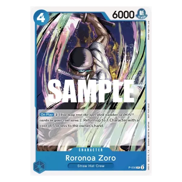 Découvrez Roronoa Zoro (p056), une carte Promo de l’extension Promos. Idéale pour compléter votre collection, cette carte Promo plaira autant aux collectionneurs qu’aux joueurs.