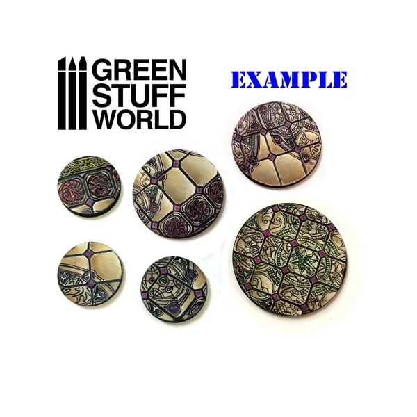 Dans le cas d’une utilisation de mastics époxy, il existe plusieurs techniques pour obtenir des résultats similaires. L’avantage de ce type de produit est qu’il sèche à l’air et peut donc être appliqué directement sur des matériaux plastiques. Dans le cas de la résine verte Green Stuff, qui est particulièrement collante, il faudra mouiller les rouleaux avec un peu d’eau avant utilisation. On peut également réduire l’adhérence de cette résine en appliquant du talc, ou même de la vaseline de modélisation. Les mastics époxy de type Milliput peuvent être également utilisés mais il est recommandé de ne pas trop les humidifier. Si le mélange est trop collant, il est conseillé de le pétrir à nouveau pour en réduire l’adhérence. Le Milliput fonctionne très bien si vous les mélangez avec de la pâte à modeler pour enfants, dans une proportion de 50% / 50%. Après utilisation de Milliput, il est très important de nettoyer correctement les rouleaux après leur utilisation.