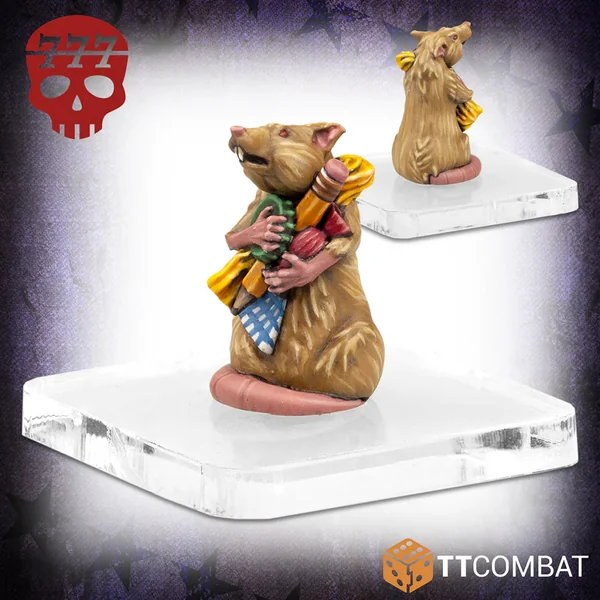 Le Pack Rat fournit des relances utiles, et le Sack Rat encourage votre équipe à faire des micro-siestes pour récupérer de l’endurance ! Et ce n’est pas tout : tous ces petits rongeurs sont des Rookies, vous pouvez donc les prendre dans une partie même sans Rattenfänger si vous le souhaitez !Les bases acryliques sont recouvertes d’un film coloré qu’il faut retirer avant l’assemblage.