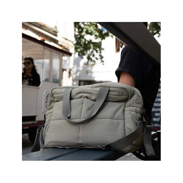 Sac polyvalent et pratique, que vous pouvez porter de trois manières : à l’épaule, à la main ou fixé à la poussette à l’aide de deux sangles. Le design matelassé donne un aspect élégant et tendance qui s’accorde avec toutes les tenues.