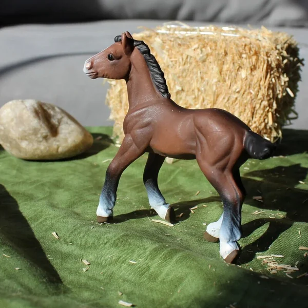 Taille et couleur : La couleur brun foncé est la plus associée aux Clydesdale, ce poulain a également des jambes sombres qui se fondent dans un plumage blanc autour des sabots. Il mesure 3 1/4 pouces de hauteur et 3 1/2 pouces de longueur, ce qui est légèrement plus grand qu’une carte à jouer.