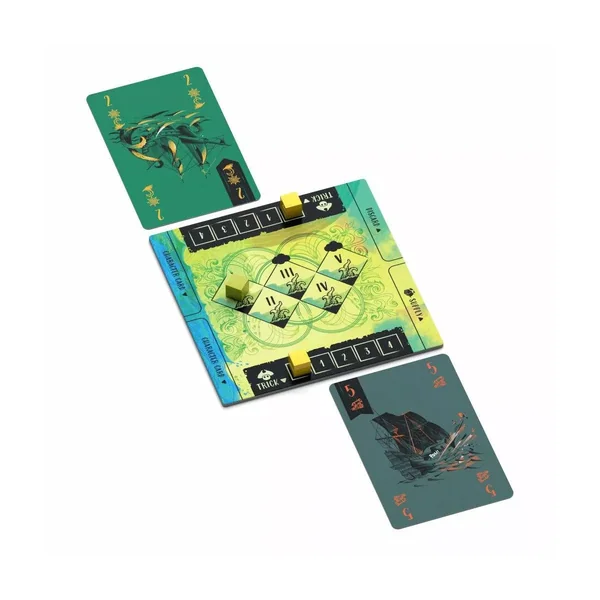 Lors d’un pli, la personne ayant remporté le précédent joue une carte et son allié doit jouer une carte de la même couleur. Si cela permet de révéler une paire de symboles, appliquez-la, qu’il s’agisse d’avancer en direction de la personne ayant remporté le pli (mais éviter le kraken !), de le combattre (en ajoutant une carte du pli à la pioche kraken) ou de subir son attaque (en ajoutant une carte de sa pioche à votre défausse, l’affaiblissant pour la manche suivante).