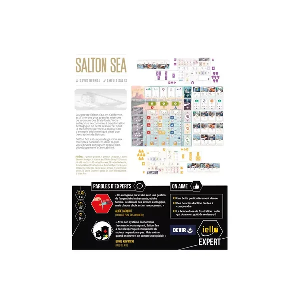 Salton Sea est un jeu de société de stratégie expert jouable de 1 à 4 joueurs, dès 12 ans pour des parties d’environ 120 minutes, localisé par Iello.