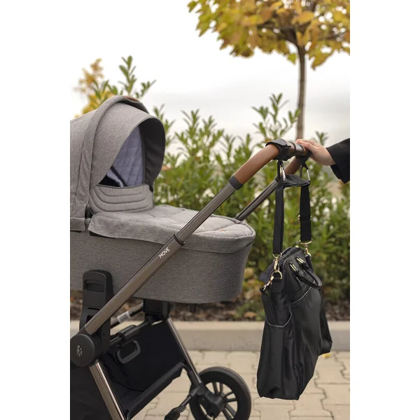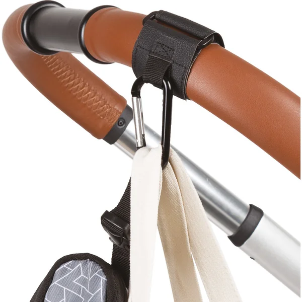 La sangle avec clip est adaptée à tous les types de poussettes. Installation facile avec du velcro. Grâce à la boucle en métal robuste, votre sac sera toujours solidement attaché au guidon.