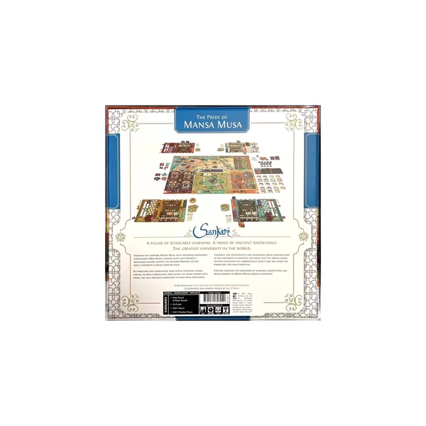 Sankoré : The Pride of Mansa Musa est un Eurogame expert, édité par Osprey Games, dans lequel 1 à 4 joueurs dès 14 ans rivalisent pour gérer la meilleure école d’une université de Tombouctou au XIVe siècle. Partie de 150-180 minutes.