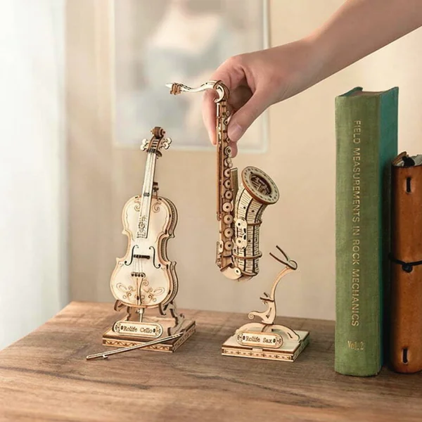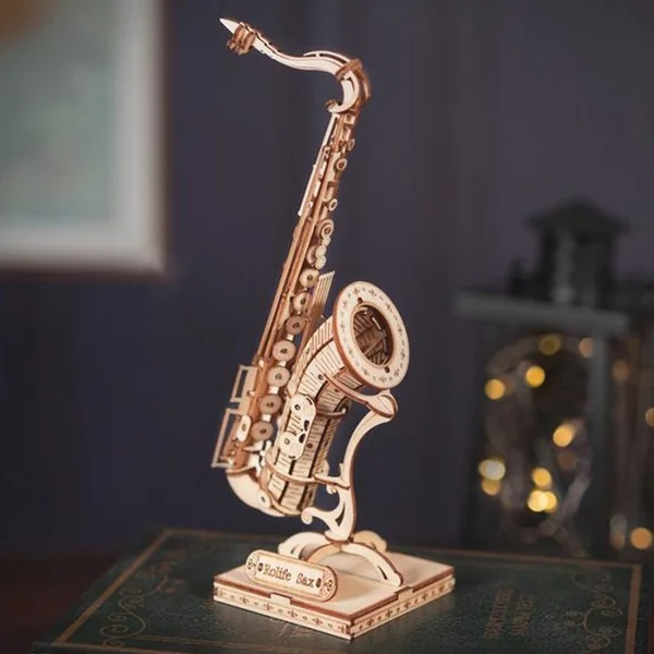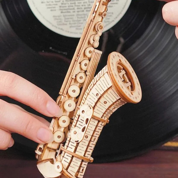 Composé de 136 pièces pour des dimensions de 8.5 x 7 x 23 cm, la maquette en bois Saxophone fera le bonheur des bricoleurs mélomanes. Il faudra compter environ 1H30 pour assembler entièrement ce puzzle 3D de l’un des instruments les plus Jazzy.