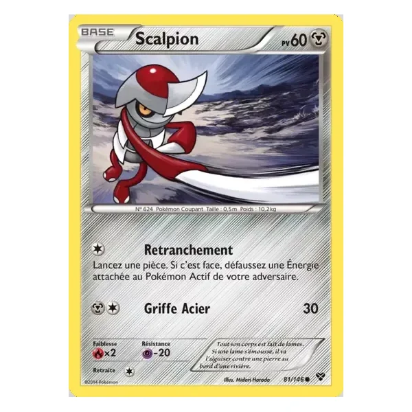 Découvrez Scalpion (xy081), une carte Pokémon de l’extension XY, provenant du bloc XY. Idéale pour compléter votre collection, cette carte Commune plaira autant aux collectionneurs qu’aux joueurs.